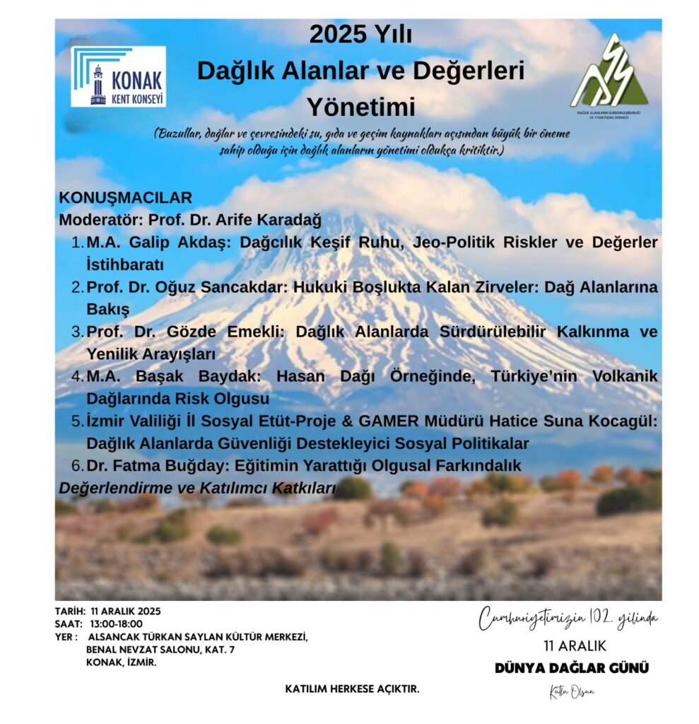 Buzullar, dağlarda ve ötesinde ‘buzul topraklar’ su, gıda ve geçim kaynakları için önemlidir” konusu 2025 yılı Uluslararası Dağlar Günü temasıdır. Tarım, su güvenliği ve savunmasız dağ topluluklarının geçim kaynakları için buzulların korunmasının önemini vurgulamak için 11 Aralık Uluslararası Dağlar Gününde etkinler yapılması, iyi bir fırsattır. Dünyada, ülkenin doğal güzelliklerinin ve toplum kalkınmasının dağlar etrafında şekillendiğinin farkına varmak için Dağlar Günü kutlanmaktadır.